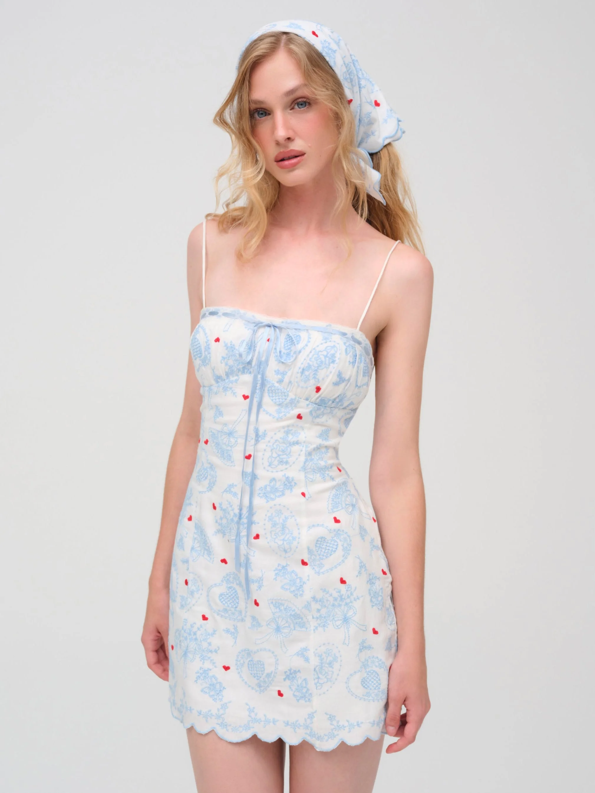 Be the ultimate Valentine's muse in the Claire white mini dress—a short lace dress with an allover crochet lace print. With a slotted lace trim and ribbon along the neckline and an embroidered scallop hem, it's the perfect little white dress for spring. Style Notes - Bust lining only - Adjustable shoulder straps - Invisible zipper at left waist Fabric + Care - Crafted in 90% viscose, 10% linen - Lining is made of 100% cotton - Dry clean only