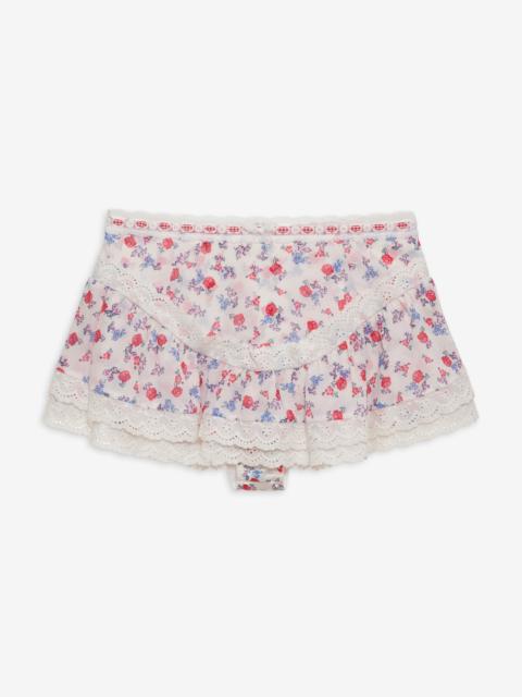 Inspired by vintage lingerie, the Devon Dot midi skirt charms with its nostalgic sheer white dotted mesh. This pull-on style polka dot midi skirt features a double layer skirt and is adorned with decorative elastic trim and a center-front bow. Pair it with the Devon Dot Bustier and Devon Dot Thong Panty for the complete lingerie set. Style Notes - Fully lined - Pull-on style - Double layer skirt Fabric + Care - Crafted in 100% polyester - Lining is made of 100% polyester - Hand wash cold - Do not wring or twist - Line dry - Do not iron - Do not dry clean