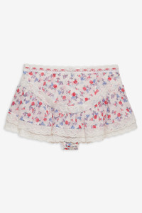 Celebrate the wild beauty of nature with the Ditsy Day micro mini skirt. Crafted in a romantic floral print, this ruffled mini skirt is adorned with a delicate eyelet lace trim, a slotted trim with gingham ribbon at the waist, and lace lingerie bows. Style Notes - Built-in satin panty with elasticated leg opening Fabric + Care - Crafted in 100% polyester - Ruffle is made of 100% polyester - Embroidery is made of 100% polyester - Panty is made of 60% polyester, 33% recycled polyester, 7% elastane - Gusset is made of 100% viscose - Hand wash cold - Only non-chlorine bleach - Do not wring or twist - Line dry - Do not iron - Do not dry clean