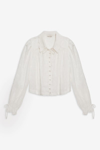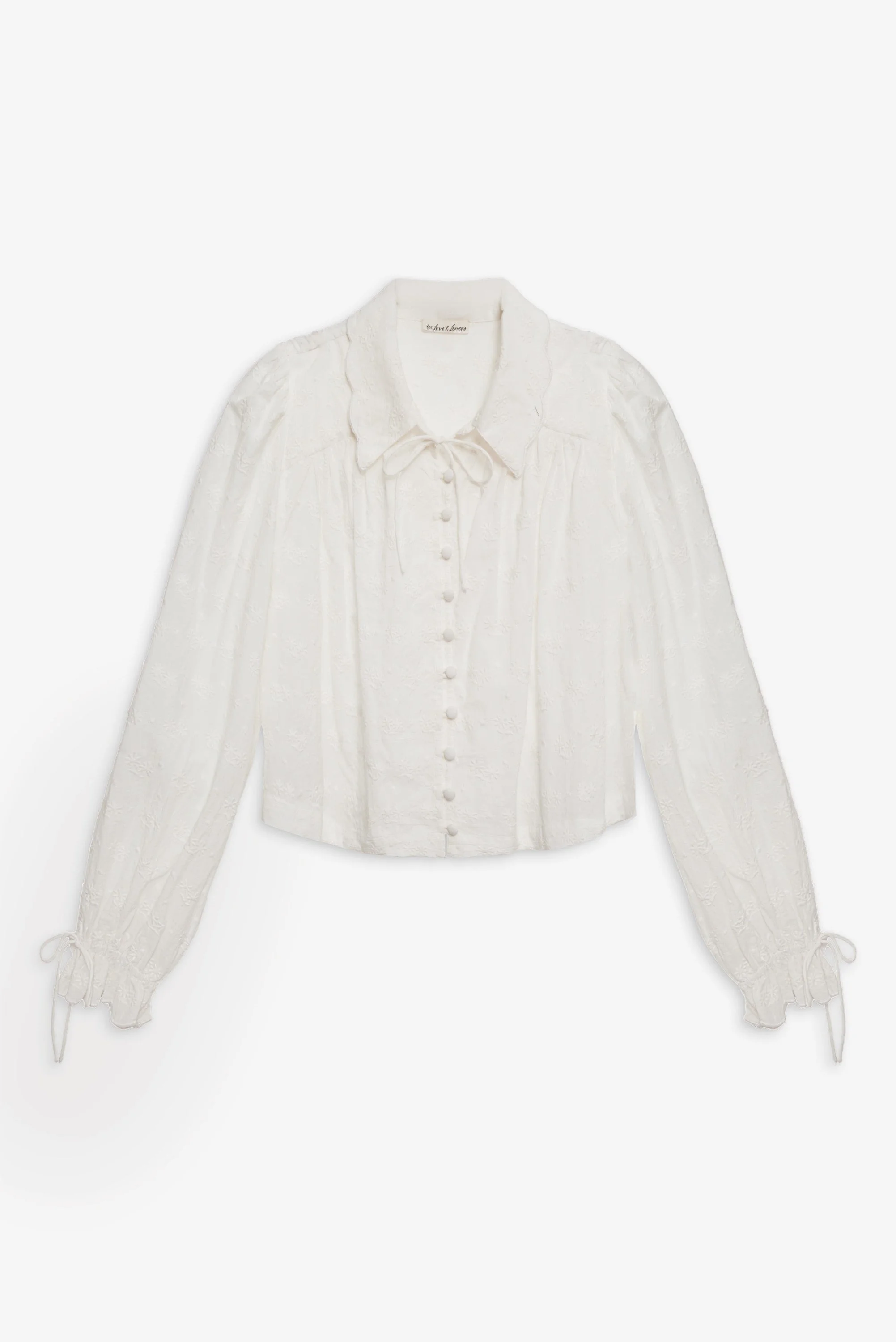 Go from sun-drenched mornings to balmy nights in the ultra-feminine Edie white eyelet top, featuring a three-quarter length puff sleeve and gathered body. This cropped blouse spotlights a scalloped edge collar and sleeve opening ruffle—pair it with the matching Edie Eyelet Bloomer Short. Style Notes - Unlined - Functional buttons at the center-front Fabric + Care - Crafted in 100% cotton - Machine wash cold - Lay flat to dry - Cool iron ok - Ok to dry clean
