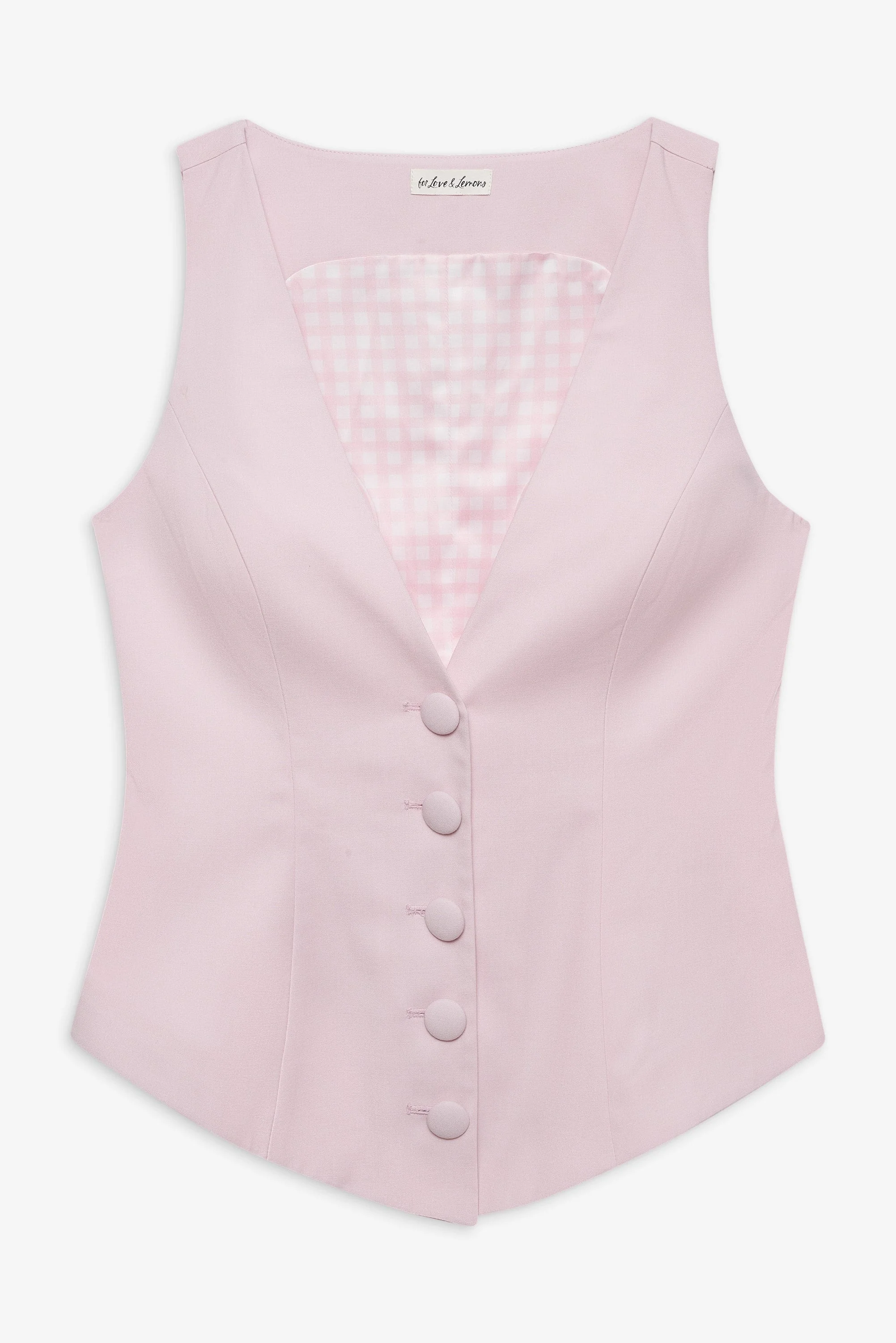 Designed for the vintage-loving muse, the Elanah pink sleeveless vest charms with an ultra-flattering v-neckline. This chic waistcoat redefines polished ease for the modern Muse. Style Notes - Fully lined - Functional buttons at the center-front - Adjustable strap with buckle at the back waist Fabric + Care - Crafted in 62% polyester, 35%rayon, 3% spandex - Lining is made of 100% polyester - Machine wash separately - Do not bleach - Tumble dry low - Iron cool - Dry clean