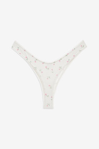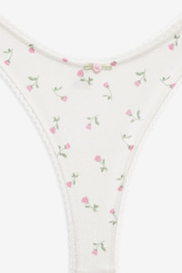 Build your dream top drawer with the Elliana white thong panty. Effortless, pretty, and personal, this floral thong spotlights a high-cut leg, scooped waistband, and is adorned with scalloped picot trims and a rosette at front waist. Pair with the Elliana underwire bra for the complete lingerie set. Style Notes - Modal gusset lining - Thong back coverage Fabric + Care - Crafted in 95% polyester, 5% elastane - Gusset is made of 100% viscose - Machine wash cold - Only non-chlorine bleach - Tumble dry low - Cool iron - Do not dry clean