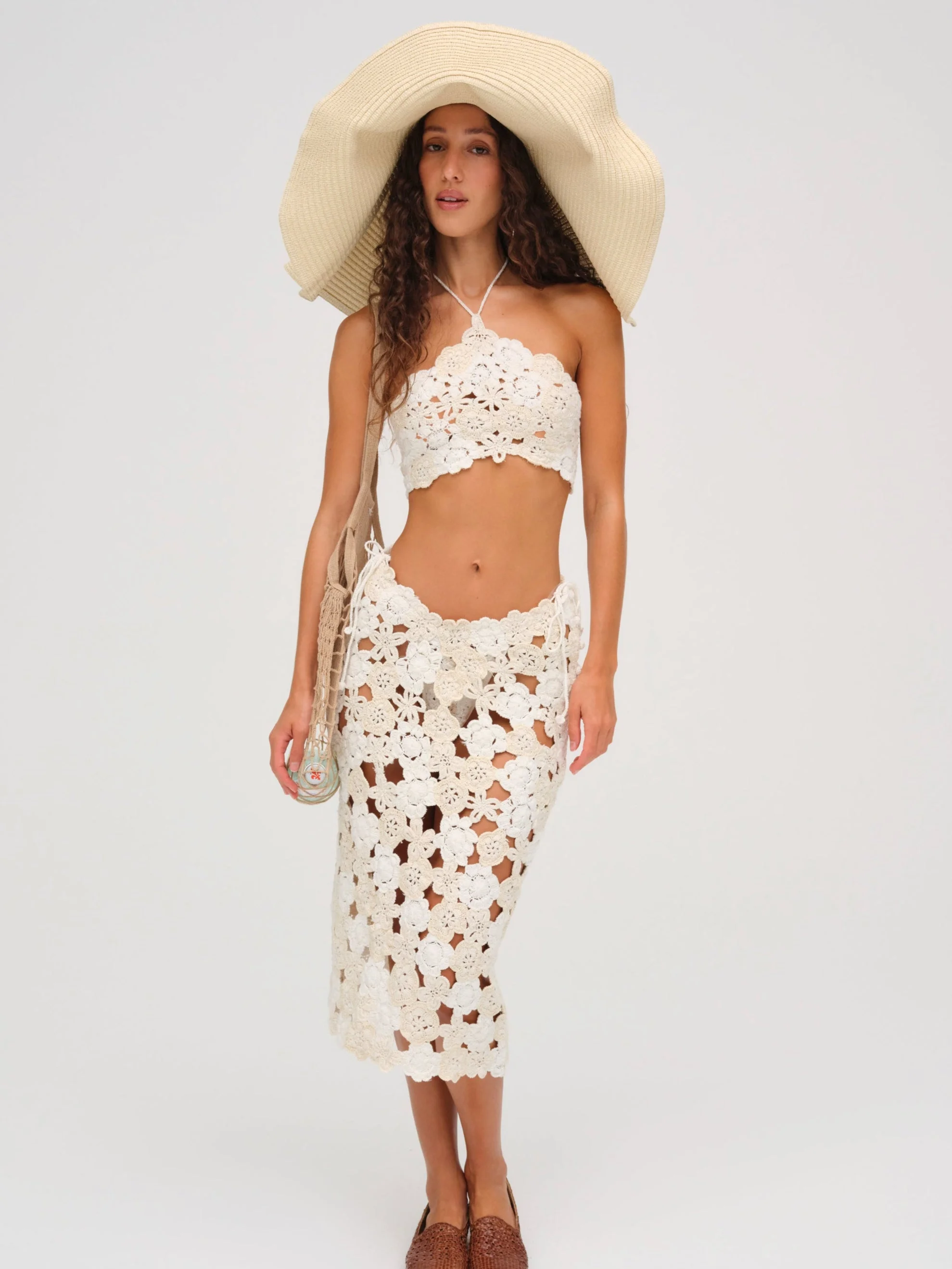 Channel retro romance with the Floral crochet skirt–a vintage-inspired cover up skirt crafted in an intricate 100% cotton floral crochet. This white crochet skirt is low waisted and features a scalloped trim. Style Notes - Unlined - Low waist dips at center-front - Functional covered dome button opening along the side seam Fabric + Care - Crafted in 100% cotton - Hand wash in warm water - Lay flat to dry - Cool iron - Do not dry clean
