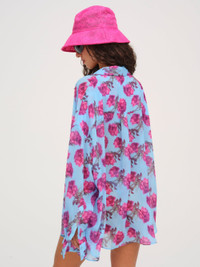 Make a chic beachside statement in the Floral Stems sheer button-down top–an easy-going oversized shirt crafted in a vibrant floral printed chiffon for an effortlessly cool look.