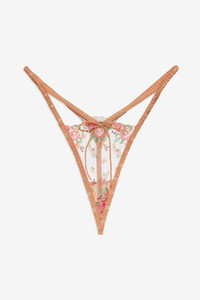 Designed for living, lounging, and layering—the Glimmer Rosebud embroidered thong features flirty cutouts, scrunchie hip straps, and a decorative skinny bow at center-front. Pair with Glimmer Rosebud Style Notes - Thong back coverage Fabric + Care - Crafted in 100% polyester - Embroidery is made of 92% polyester, 8% metallic fiber - Gusset is made of 100% modal - Hand wash cold - Only non-chlorine bleach - Do not wring or twist - Line dry - Do not iron - Do not dry clean