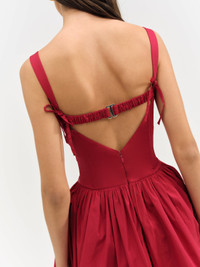 Make the case for your maritime romance with the Helena poplin corset mini dress—a red mini dress crafted in a crisp poplin with underwire cups, a boned bodice, and a gathered skirt for a feminine fit. Fit Notes - True to size Style Notes - Lined - Adjustable ties at back straps - Invisible zipper at center-back - Elasticated back band with swan hook closure Fabric + Care - Crafted in 97% cotton, 3% spandex - Lining is made of 100% cotton - Machine wash cold gentle cycle - Lay flat to dry - Cool iron ok - Ok to dry clean