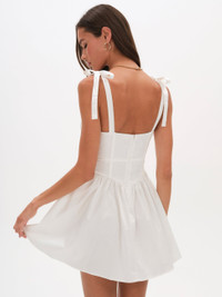Ecovera poplin mini dress with shirred drawstring at neckline and corset details with taping at waist. Functional ties at shoulders and invisible zipper closure at CB. Fully lined. Style Notes - Fully lined - Corset details at waist - Functional ties at shoulders - Invisible zipper closure in back - Partially made with recycled material - Imported Fabric + Care - Crafted in 97% ecovero, 3% spandex - Lining is made of 98% recycled polyester, 2% spandex