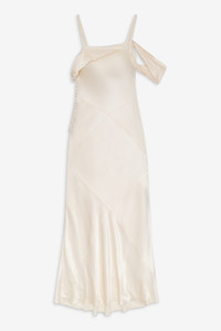 Undeniably feminine, the Jewel ivory dress is inspired by vintage evening gowns. Featuring an asymmetrical neckline, this silky dress has a suggestive off-the-shoulder sleeve and a draped ruffle detail at the back. Fit Notes - The Jewel Maxi Dress is designed to be form-fitting, however it runs slightly large. - We recommend sizing down. Style Notes - Fully lined - Side button closure Fabric + Care - Crafted in 53% ecovero™ viscose, 47% viscose - Lining is made of 100% recycled polyester - Eco dry clean recommended to avoid use of harmful chemicals like "perc".