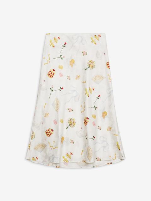 Crafted in heavyweight bridal satin, the Lena black mini skirt exudes a sense of charm with it's sweet, bubble skirt silhouette. Featuring a built-in rib knit short with a lace trim, this micro skirt is sugar, spice, and all things nice for the winter season. Fit NotesThe Lena Bubble Skirt is designed for a low-rise fit. For a more high-waisted fit, we recommend sizing down. Style Notes - Fully lined - Encased elastic at the waist and hem Fabric + Care - Crafted in 100% recycled polyester - Lining is made of 91% rayon, 9% spandex - Dry clean only