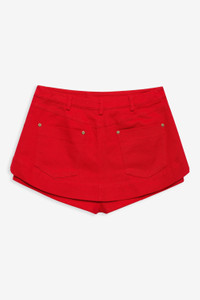 Make a chic, off-beat statement in the Lipstick Denim mini skort—a high-waisted red mini skort with a sweetly nostalgic heart shaped button at waistband and heart shaped cut outs. This festive micro skort is perfect for any and all of your valentine's festivities. Style Notes - Unlined - Attached shorts - Front hip and back patch pockets - Center-front button and functional zipper fly Fabric + Care - Crafted in 97% cotton, 3% spandex - Dry clean only