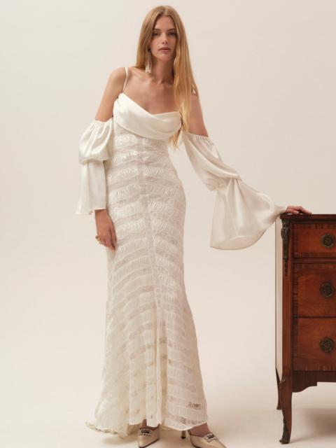 Shine and sentimentality intertwine in the Locked Hearts Mini Dress—a unique white mini dress designed with a poetic touch. A v-neckline edged with a shining linked heart trim pairs beautifully with the sequin bodice, princess seams, and soft drop waist. Style Notes - Linked hearts trim along neckline - Chiffon ties woven throughout - Sequin bodice with princess seams and drop waist - Satin beaded skirt with scalloped hem - Adjustable ties at back straps - Invisible zipper at center back - Fully lined Fabric + Care - Crafted in 100% nylon - Skirt is made of 100% cotton - Lining is made of 100% cotton - Contrast is made of 100% polyester - Dry clean only