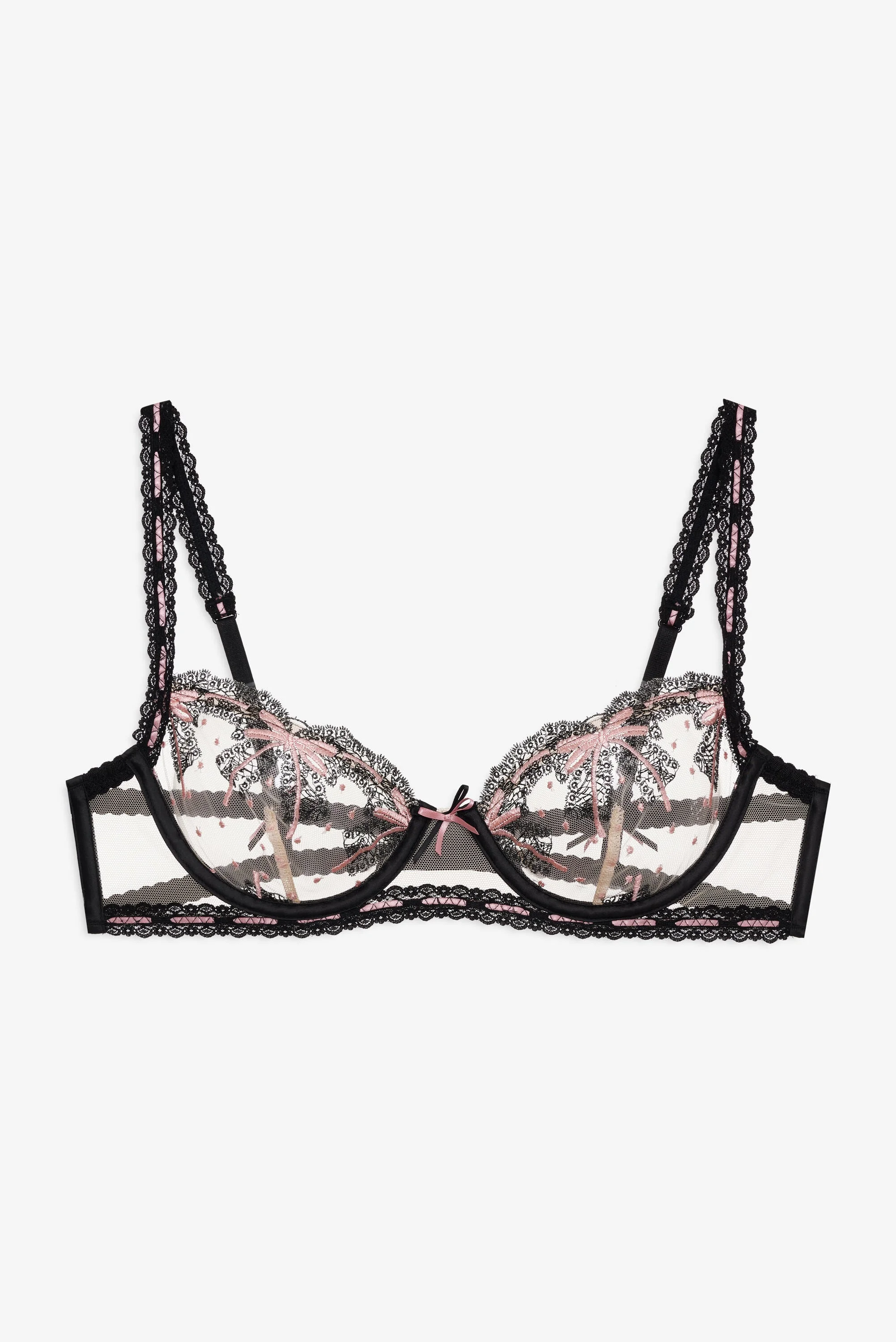 Say it in lace with the Love Letters Underwire Bra, a sheer embroidered bra that captures the art of flirtation. Crafted with slotted lace trims and satin ribbon bows, this unlined underwire bra pairs perfectly with the Love Letters Thong Panty for the completed lingerie set. Style Notes - Unlined - Decorative elastic - Adjustable shoulder straps - Cage back with 3-row hook and eye closure Fabric + Care - Crafted in 100% polyamide - Embroidery is made of 96% polyester, 4% other fiber - Trim is made of 80% polyamide, 20% polyester - Hand wash cold - Only non-chlorine bleach - Do not wring or twist - Line dry - Do not iron - Do not dry clean