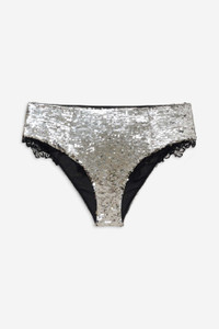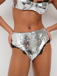 It's your time to shine this sparkle season with the Maia silver sequin panty—a high waisted panty with contrast scalloped lace trims at the leg. Pair it with the Maia Underwire Bra for a dazzling co-ord set. Style Notes - Fully lined Fabric + Care - Crafted in 94% polyester, 6% elastane - Body lining is made of 78% polyester, 22% elastane - Gusset lining is made of 100% viscose - Hand wash cold, do not wring or twist - Line dry only
