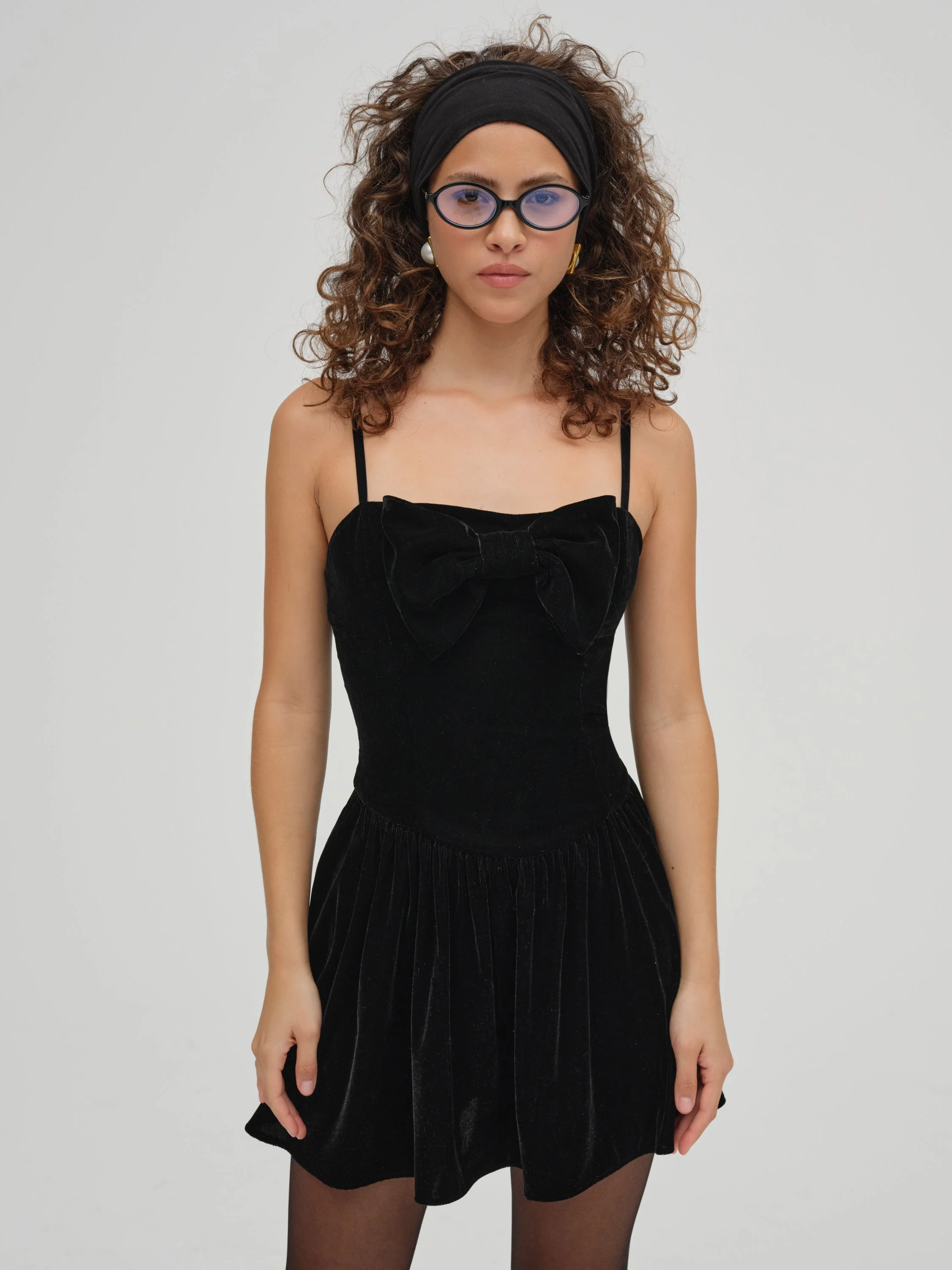 Inspired by our favorite holiday cocktail, the Martini Olive black mini dress is the perfect party dress for the festive season. Featured in plush velvet, this little black dress is cut to a drop waist with a gathered skirt and is adorned with a large velvet bow at the neckline. Fit Notes - The Martini Olive Velvet Mini Dress is designed to be fitted. - We recommend taking your usual size. Style Notes - Bodice lining only - Velvet elastic shoulder straps - Invisible zipper at the center-back Fabric + Care - Crafted in 100% polyester - Lining is made of 98% recycled polyester, 2% spandex - Dry clean only