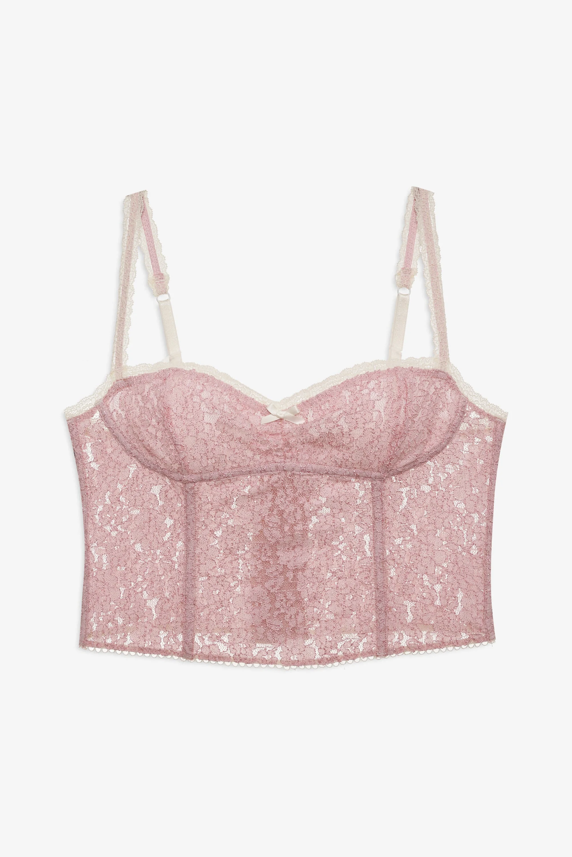 Designed for heavenly days at home, the Pamela Stretch pink bustier exudes an easy-going romance. Crafted in Everyday Lace, this bustier top features soft cups, a fully boned bodice, and lace trims. It's finished with pretty lace lingerie bows and picot elastic. Pair it with the Pamela Stretch Lace Cheeky Panty for a co-ord set. Style Notes - Bust lining only - No underwire - Stretch lace trims - Adjustable shoulder straps - 3-row hook and eye tape Fabric + Care - Crafted in 68% polyamide, 30% polyester, 2% elastane - Lace is made of 90% polyamide, 10% elastane - Cup lining is made of 92% polyamide, 8% elastane - Hand wash cold - Only non-chlorine bleach - Do not wring or twist - Line dry - Do not iron - Do not dry clean