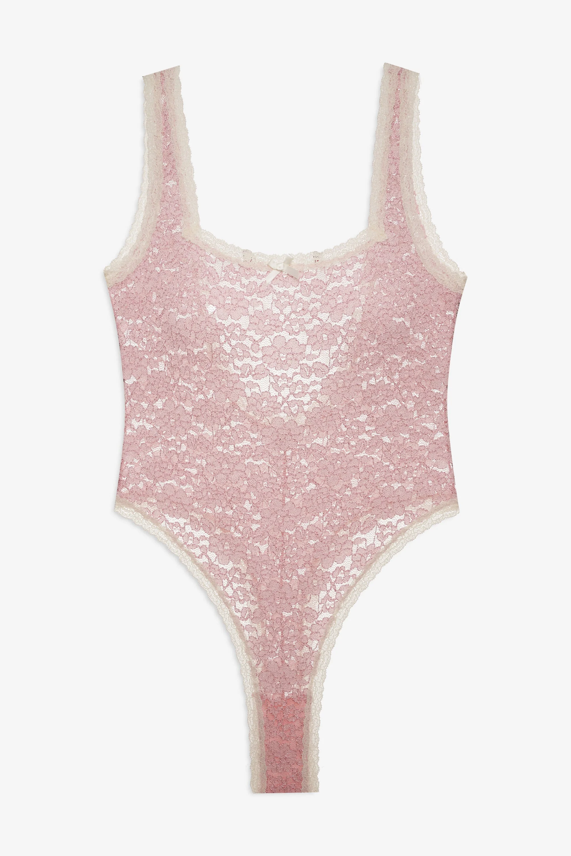 Level-up your cozy days at home in the Pamela Stretch LaceBodysuit—a pink lingerie teddy crafted in cloud-like Everyday Lace. Featuring a square neckline and cheeky back coverage, this pink bodysuit is adorned with romantic satin lingerie bows. Style Notes - Unlined - Stretch lace trim Fabric + Care - Crafted in 68% polyamide, 30% polyester, 2% elastane - Lace is made of 90% polyamide, 10% elastane - Hand wash cold - Only non-chlorine bleach - Do not wring or twist - Do not iron - Do not dry clean