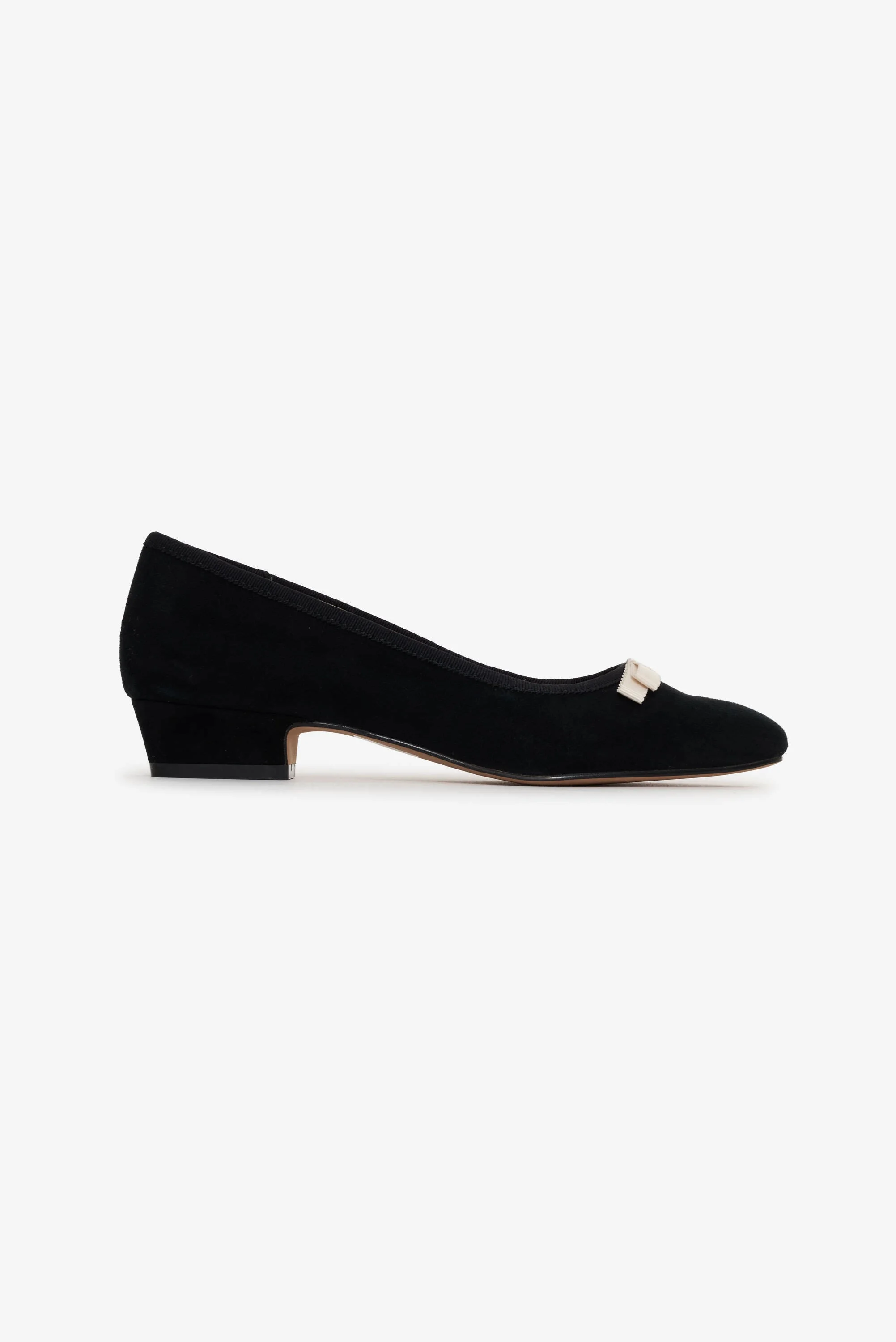 Make every step sweeter this fall with the Rosie black suede heels. Crafted in a sleek suede, these ballet heels feature a pointed-toe and are adorned with a contrast decorative bow for just the right amount of femininity and charm. Style Notes - Suede upper - PU leather lining - Heel height: 28mm Fabric + Care - Upper is crafted in suede - Lining is made of pu - Sole is german
