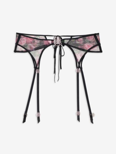 The Roxanne black garter belt is your something naughty for the holidays. Crafted in lace and featuring sexy scalloped edges, this lace garter is adorned with decorative rosettes and skinny bows. Style it with the Roxanne Underwire Bra and Thong Panty for the matching set. Style Notes - Unlined - Boning at the princess pleats and side seams - Hook and eye tape closure at the side seam - Garter straps feature decorative trim with functional garter clips and ribbons Fabric + Care - Crafted in 100% polyamide - Embroidery is made of 100% polyester - Hand wash cold, do not wring or twist - Line dry only