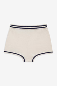 Make a chic, yet sophisticated statement in the Simona Pointelle knit shorts. These navy country club-esque high waisted hot pants feature a contrast striped rib along the waistband and leg, and are fitted throughout with a cheeky fit at the back. Style Notes - Unlined - Elasticized waistband - Tennis Ball Belt not included* Fabric + Care - Crafted in 100% polyester - Dry clean only