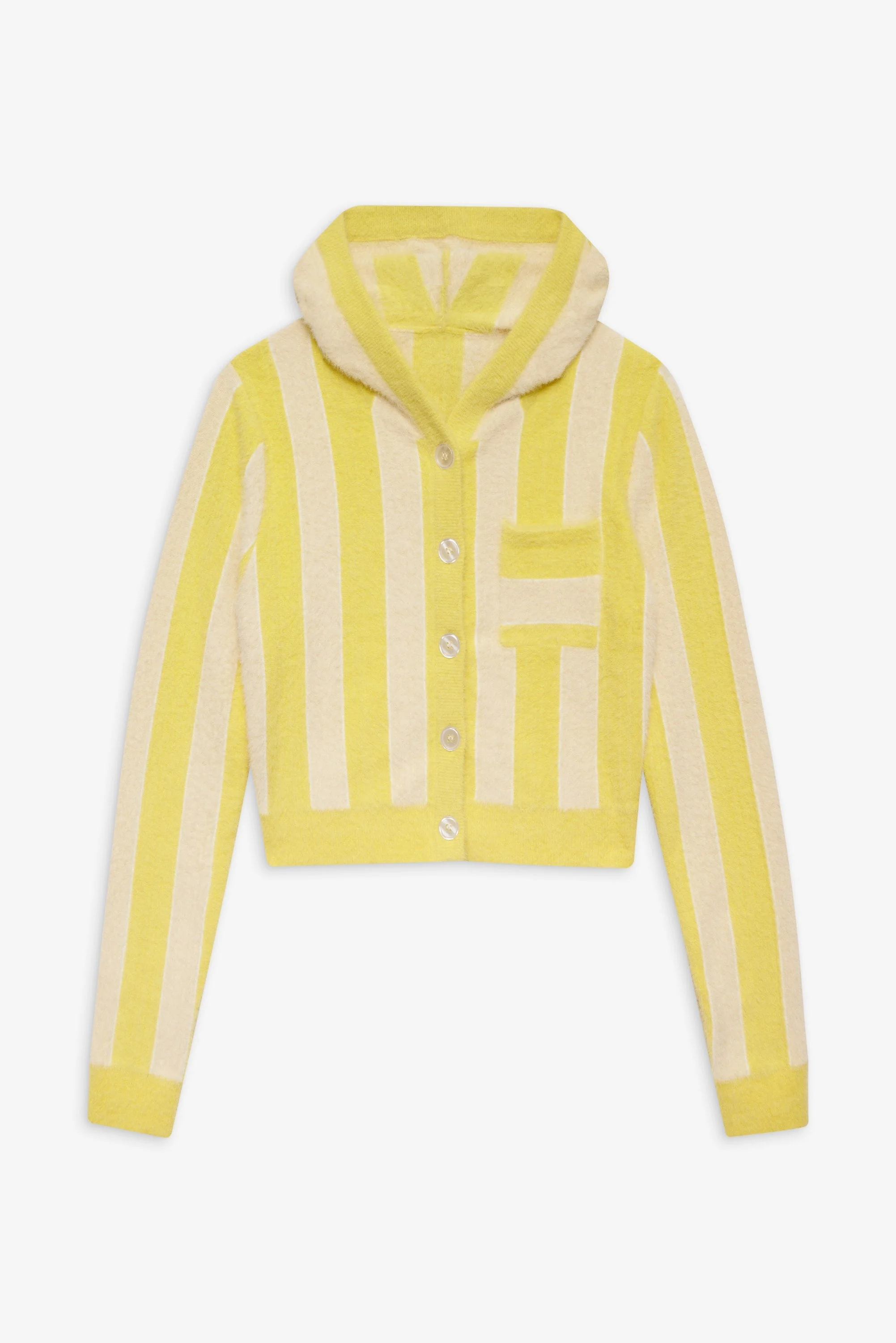 Stop and smell the flowers in the Sleepy Stripe yellow hoodie. A cropped hoodie with a patch pocket at left chest—perfect for crisp morning walks through the garden. Style Notes - Unlined - Functional buttons at the center-front Fabric + Care - Crafted in 100% polyamide - Place garment In lingerie bag - Machine wash cold gentle cycle - Do not bleach - Tumble dry low - Do Not Iron - Do Not Dry Clean