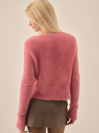 The ultra-feminine Tayla pink cardigan will become a wear-on-repeat knitwear staple this winter. Crafted in a soft mohair, this bow cardigan is adorned with a single satin tie bow at the front neckline for a romantic look. Style Notes - Unlined - Fitted long sleeves - Tall rib panels Fabric + Care - Crafted in 100% nylon - Dry clean only