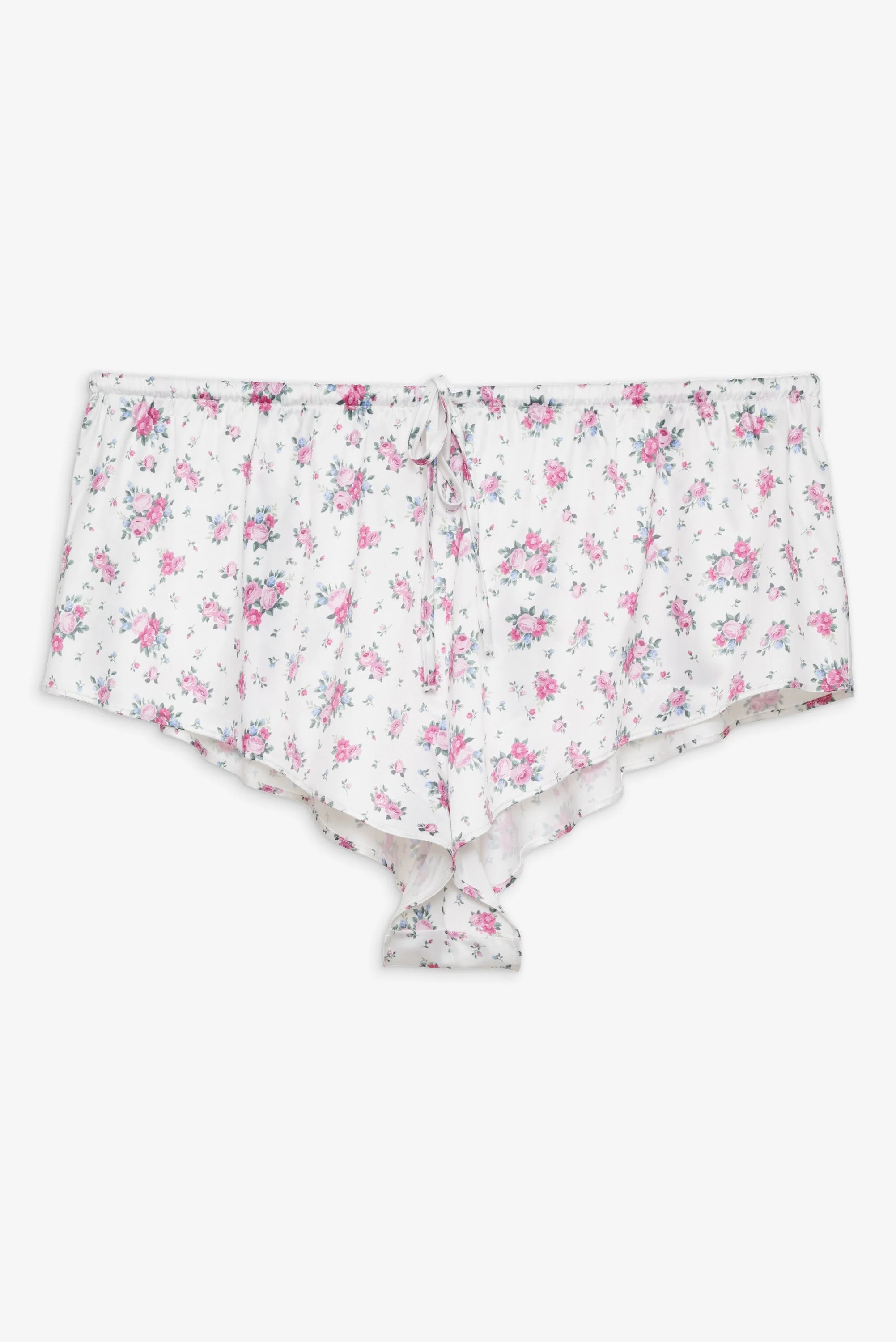 Inspired by vintage kitsch motifs, the That’s Amore sleep short makes for the perfect at home Valentine’s Day ensemble. This sweet and feminine pajama short is crafted in a dainty floral printed satin, spotlighting a gathered waist. Style Notes - Unlined - High-waisted - Elastic waistband with drawstring Fabric + Care - Crafted in 97% polyester, 3% elastane - Wash separately - Machine wash cold - Tumble dry low - Do not Iron - Do not dry clean