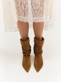 Take your first steps into fall in the Verbana slouch boots. These brown suede boots spotlight a chic pointed toe and stiletto kitten heel. Style Notes - Suede upper - Heel height: 52mm Fabric + Care - Upper is crafted in suede - Lining is made of PU leather - Sole is german