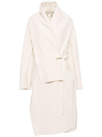 belted-up coat Highlights - Ecru white - Cotton-cashmere/virgin wool blend - Belted waist - Two side jetted pockets - Long sleeves - Tonal stitching Made in Italy Composition Outer: Virgin Wool 75%, Polyamide 20%, Cashmere 5% Lining: Cotton 90%, Polyamide 10% SIZE & FIT Model measurements Height 5 ft 10 in(1.77 m) Bust/Chest 31.49 in(80 cm) Hips 35.43 in(90 cm) Waist 25.19 in(64 cm) FittingInformation Designed for a wraparound style that can be adjusted to your preference Made from a midweight non-stretch fabric