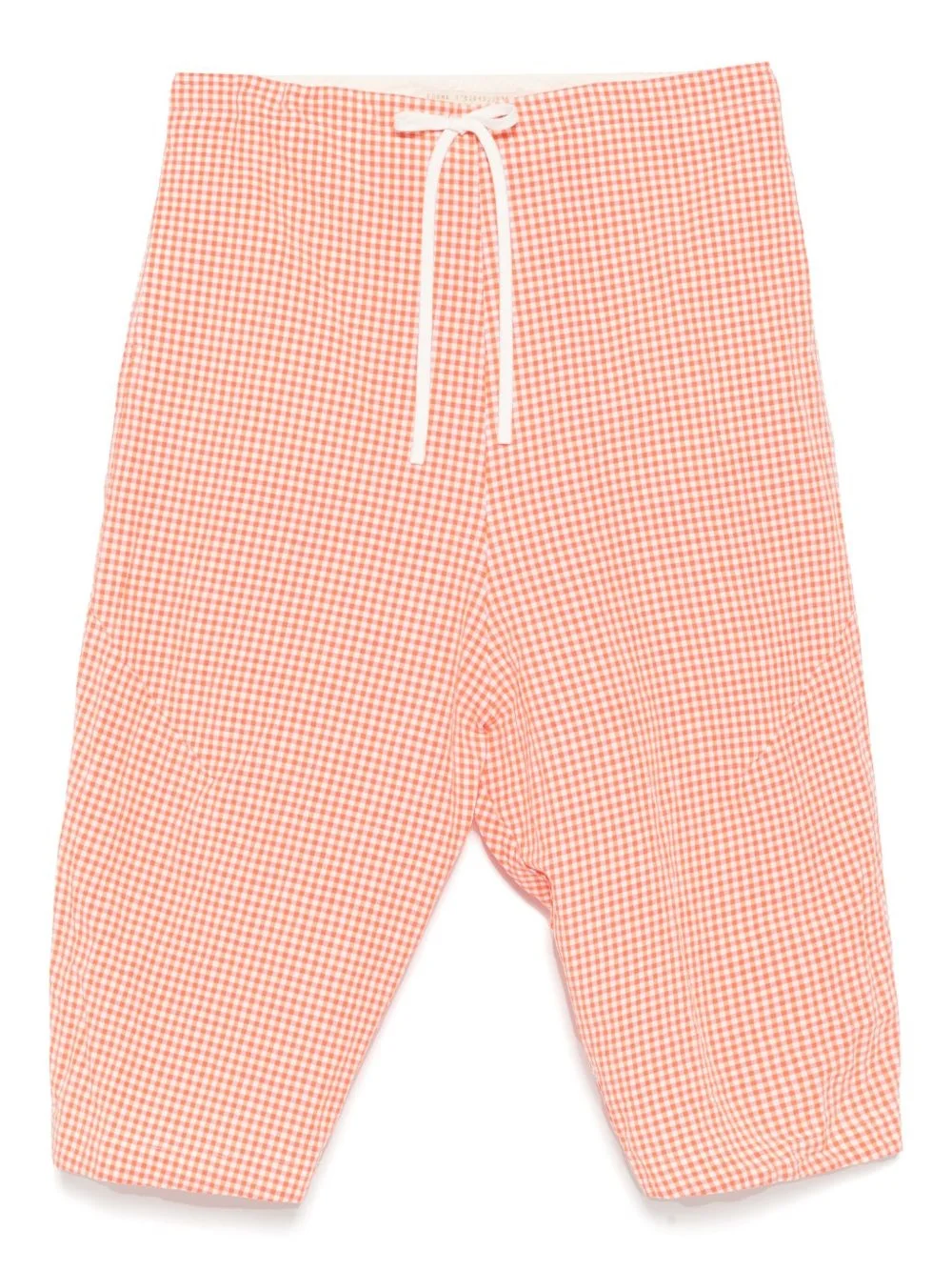 gingham check pattern pants Highlights - Red - Drawstring waist - Two side inset pockets - Rear patch pocket - Straight hem Made in Italy Composition Outer: Linen/Flax 56%, Cotton 44% Lining: Cotton 100%