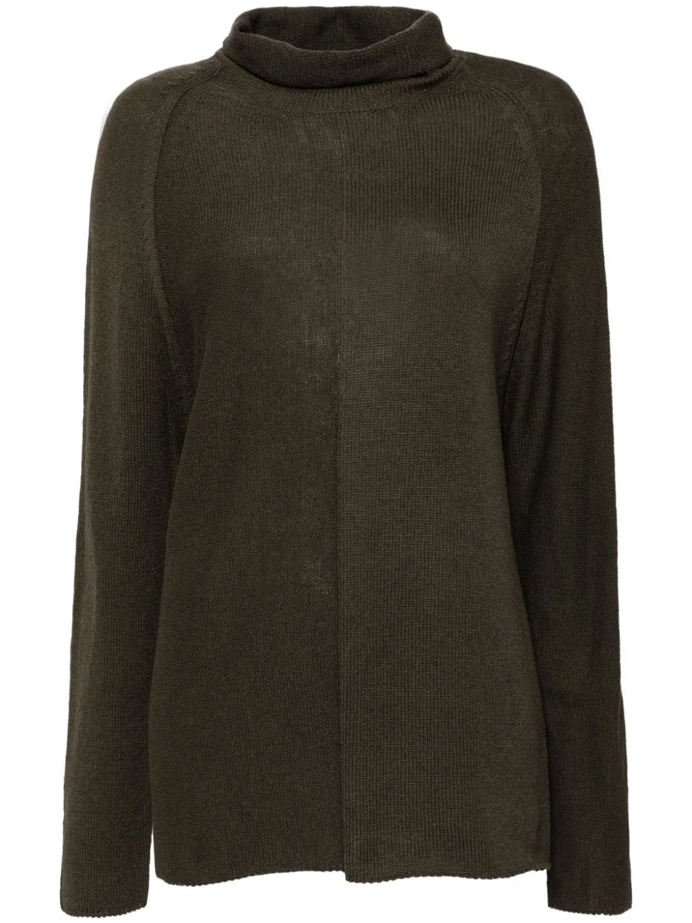 High neck pullover Highlights - Military green - Virgin wool - Fine knit - Knitted construction - Roll neck - Long raglan sleeves - Straight hem Made in Italy Composition Virgin Wool 100%