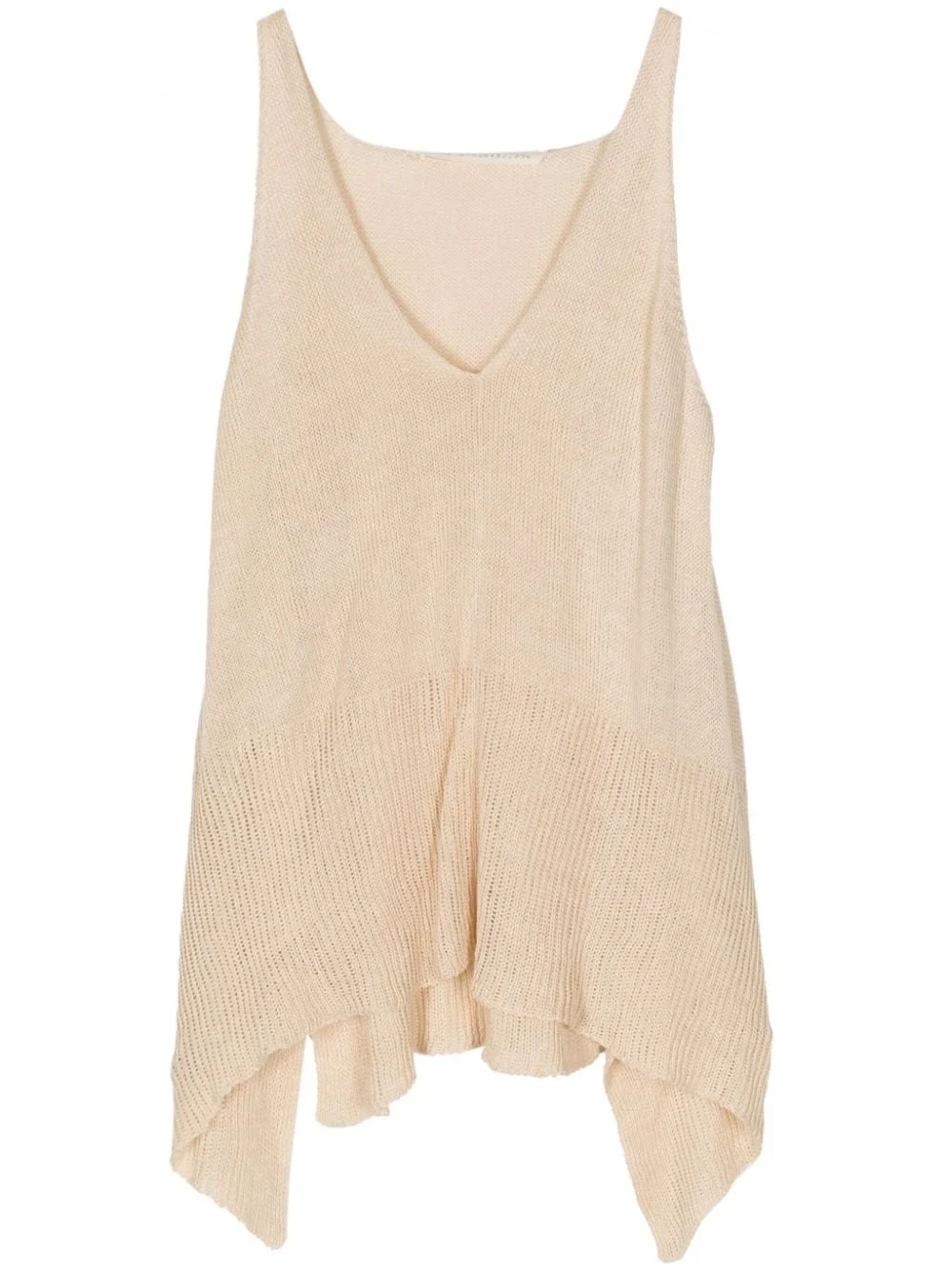 knitted linen blend top Highlights - Vanilla white - Cotton/linen - Sleeveless - V-neck - Knitted construction - Curved hem Made in Italy Composition Linen/Flax 73%, Cotton 27%