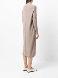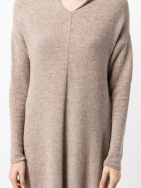 knitted long dress walnut brown wool V-neck long sleeves calf-length side slits Made in Italy Composition Wool 100% SIZE & FIT Model measurements Height 5 ft 10 in(1.79 m) Bust/Chest 32.28 in(82 cm) Hips 35.43 in(90 cm) Waist 24.01 in(61 cm) FittingInformation This piece fits true to size. We recommend you get your regular size Cut for a relaxed fit Made with a mid-weight fabric Washing instructions Dry Clean Only