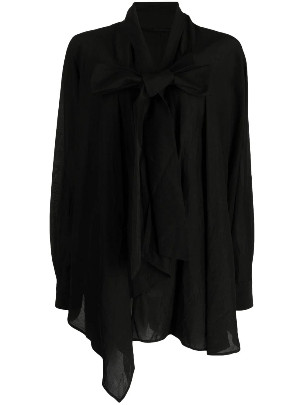 knot-detailing long-sleeve blouse Highlights - Black - Knot detailing - V-neck - Long sleeves - Asymmetric hem Made in Italy Composition Viscose 62%, Linen/Flax 38%