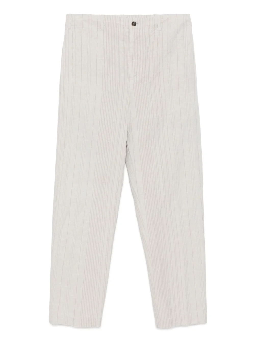 Pullon trousers Highlights - Light grey - Front button fastening - Elasticated waistband with internal drawstring - Belt loops - Stripe print Made in Italy Composition Outer: Linen/Flax 56%, Cotton 44% Lining: Cotton 90%, Polyamide 10%