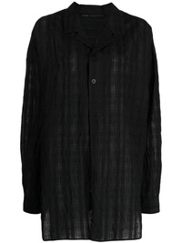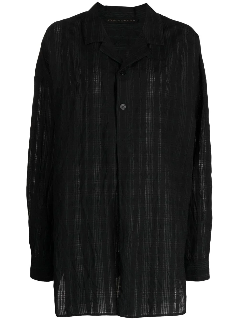 semi-sheer long-sleeve shirt Highlights - Black - Cotton-linen blend - Semi-sheer construction - Camp collar - Front button fastening - Long sleeves - Rear curved hem Made in Italy Composition Linen/Flax 50%, Cotton 42%, Silk 8%