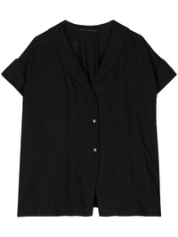 shawl-collar linen shirt Highlights - Black - Linen/flax - Shawl collar - Short sleeves - Pleat detailing to the rear - Asymmetric hem - Front button fastening Made in Italy Composition Linen/Flax 100%