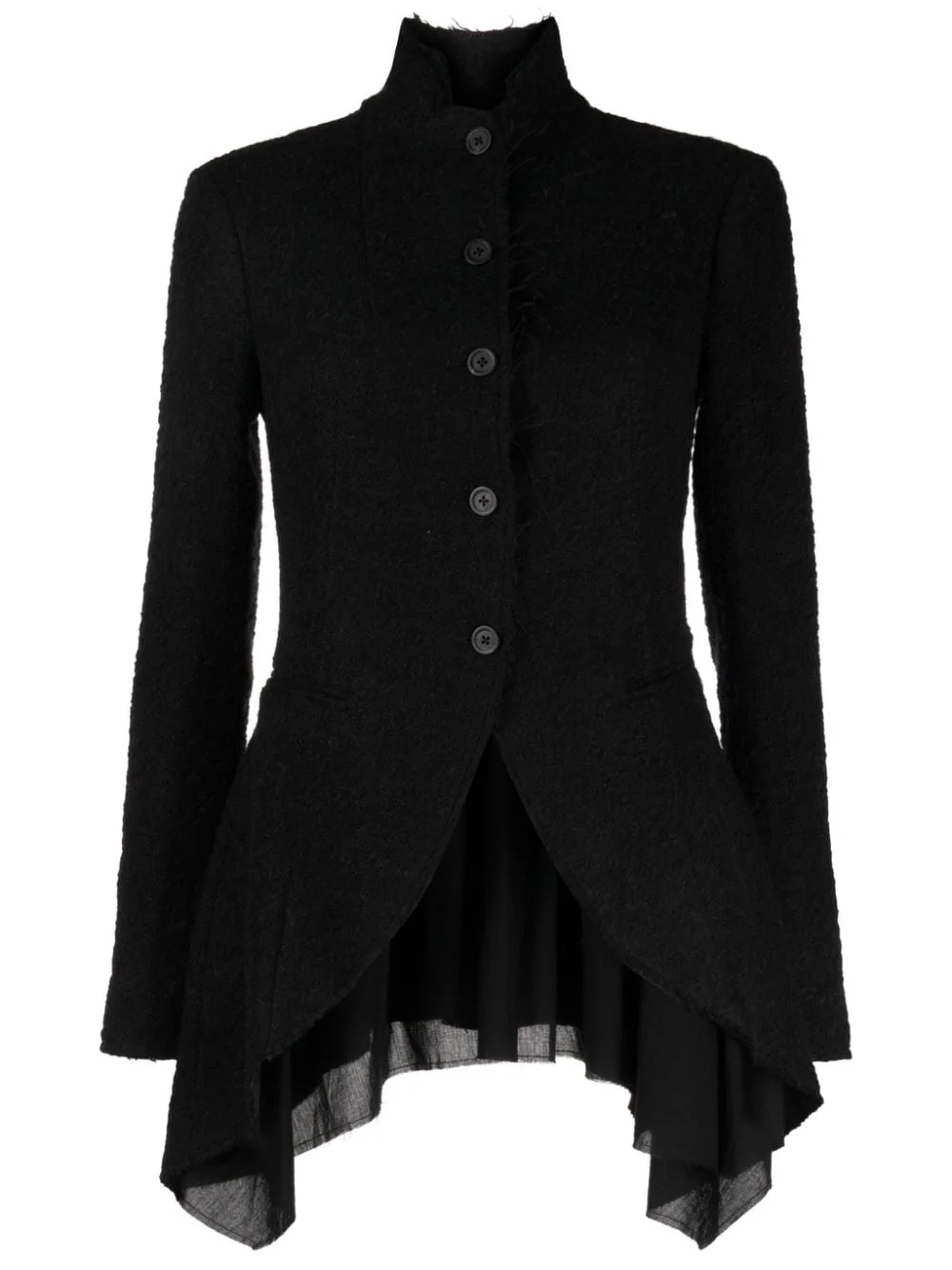 stand up-collar button-up jacket Highlights - Black - Textured finish - Tonal stitching - Stand-up collar - Front button fastening - Long sleeves - Curved hem - Two front welt pockets Made in Italy Composition Body: Hemp 50%, Alpaca 31%, Polyamide 11%, Wool 8% Lining: Cotton 100% Sleeve Lining: Viscose 50%, Acetate 50% SIZE & FIT Model measurements Height 5 ft 10 in(1.77 m) Bust/Chest 33.46 in(85 cm) Hips 35.43 in(90 cm) Waist 23.62 in(60 cm) FittingInformation Designed to be unstructured, offering a loose fit throughout The vented hem offers movement at the rear Made from a midweight non-stretch fabric This piece fits true to size – take your usual size Washing instructions Dry Clean Only