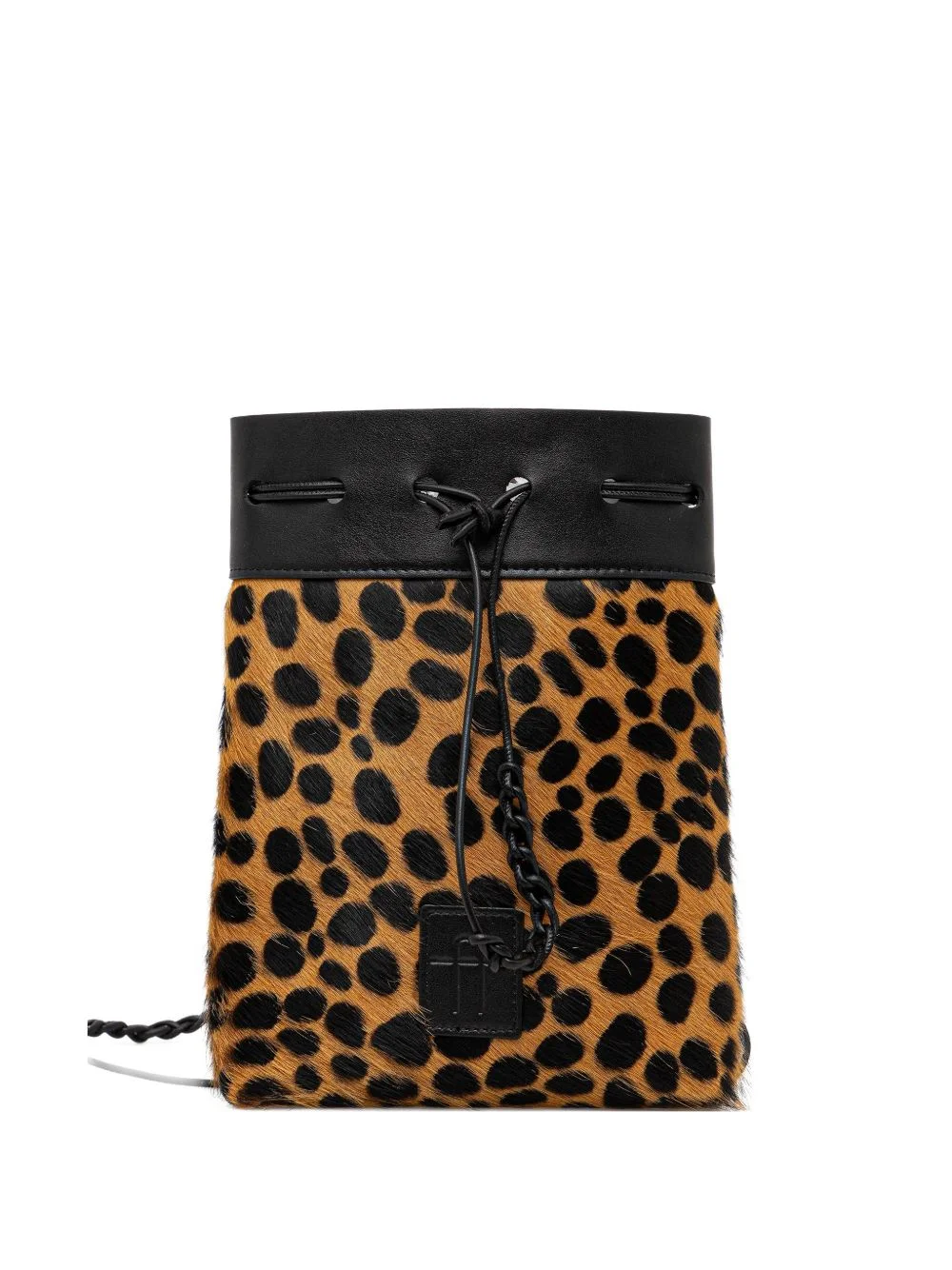 animal-print drawstring bucket bag Highlights - Brown and black - Animal print - Brand patch - Drawstring fastening Imported Composition Outer: Calf Hair 100%, Calf Leather 100% SIZE & FIT Measurement DEPTH 2.36 in(6 cm) HEIGHT 9.84 in(25 cm) STRAP 42.51 in(108 cm) WIDTH 7.08 in(18 cm)