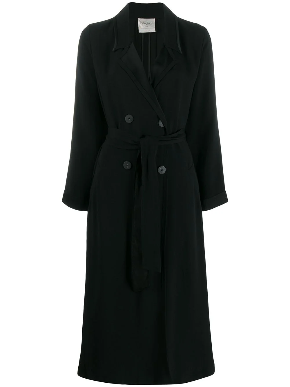 belted double breasted coat Black belted double breasted coat from Forte Forte featuring long sleeves, notched lapels, a double breasted front fastening, a belted waist and a rear inverted pleat. Made in Italy Composition Acetate 60%, Viscose 40% SIZE & FIT Model measurements Height 5 ft 11 in(1.8 m) Bust/Chest 31.88 in(81 cm) Hips 35.03 in(89 cm) Waist 24.01 in(61 cm) FittingInformation This piece fits true to size. We recommend you get your regular size Cut for a loose fit Made with a mid-weight fabric Washing instructions Dry Clean Only