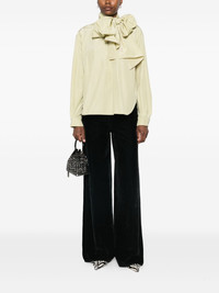 bow-detailed shirt Highlights - Pale green - Bow tie-neck detail - Long sleeves - Curved hem - Button fastening Made in Italy Composition Polyester 52%, Cotton 48% SIZE & FIT Model measurements Height 5 ft 11 in(1.8 m) Bust/Chest 31.49 in(80 cm) Hips 36.61 in(93 cm) Waist 24.4 in(62 cm) Washing instructions Machine Wash