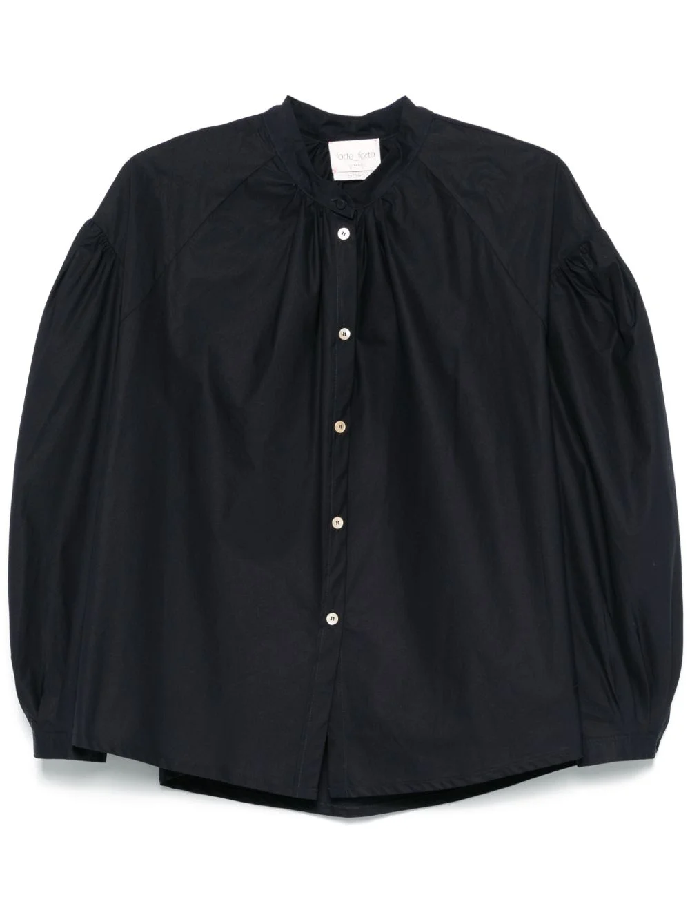 cotton blouse Highlights - Navy blue - Front button fastening - Buttoned cuffs - Band collar - Long sleeves Made in Italy Composition Cotton 100% SIZE & FIT Model measurements Height 5 ft 11 in(1.8 m) Bust/Chest 31.49 in(80 cm) Hips 36.61 in(93 cm) Waist 24.4 in(62 cm) FittingInformation Designed to be unstructured, offering a loose fit throughout Made from a midweight non-stretch fabric Washing instructions Machine Wash