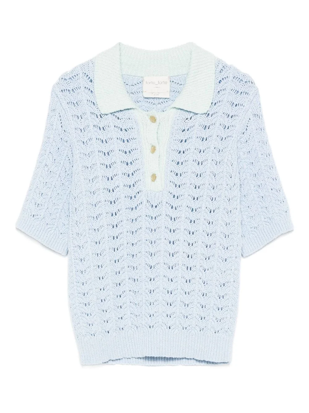 crochet-knit polo top Highlights - Light blue - Crochet knit - Polo collar - Short sleeves - Button fastening Made in Italy Composition Fabric 100% Washing instructions Read Manufacturer Guidelines