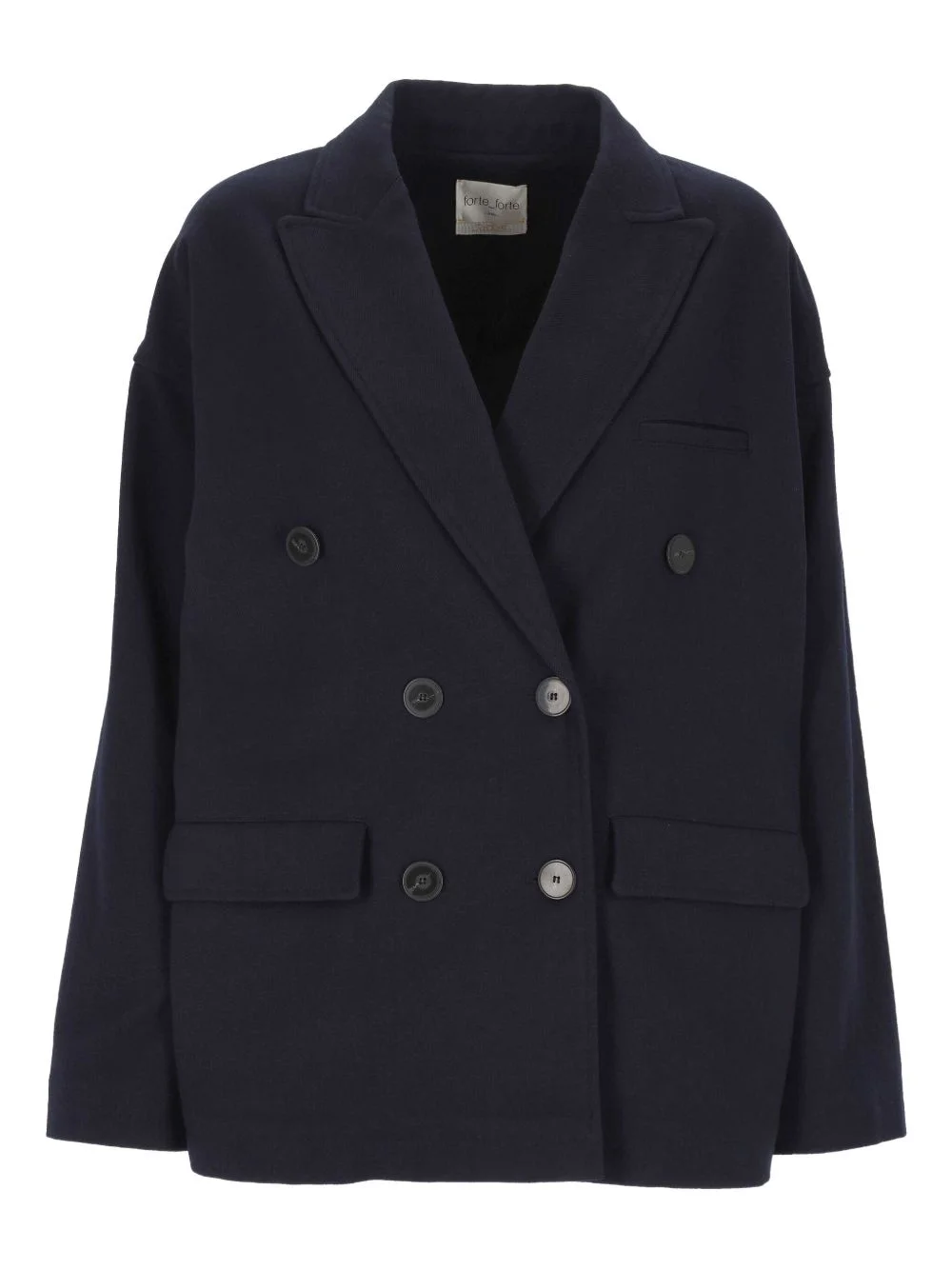 double-breasted buttoned jacket Highlights - Dark blue - Double-breasted fastening - Four buttons - Welt pockets - Notched lapel Made in Italy Composition Outer: Cotton 55%, Polyester 28%, Viscose 15%, Elastane 1%, Polyamide 1% Lining: Viscose 52%, Cotton 48% Washing instructions Read Manufacturer Guidelines