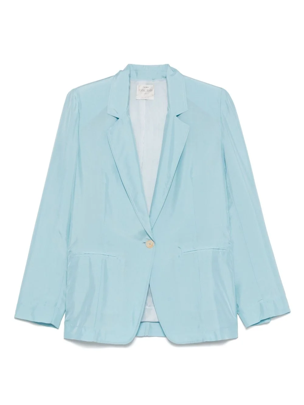 silk blazer Highlights - Sky blue - Front button fastening - Two front jetted pockets - Buttoned cuffs - Long sleeves Made in Italy Composition Outer: Silk 100% Lining: Cupro 100% SIZE & FIT Model measurements Height 5 ft 10 in(1.78 m) Bust/Chest 33.46 in(85 cm) Hips 36.22 in(92 cm) Waist 23.22 in(59 cm) FittingInformation Designed for a relaxed fit, this piece allows for comfort and movement when worn The internal shoulder pads offer a structured shape Made from a lightweight non-stretch fabric Washing instructions Hand Wash