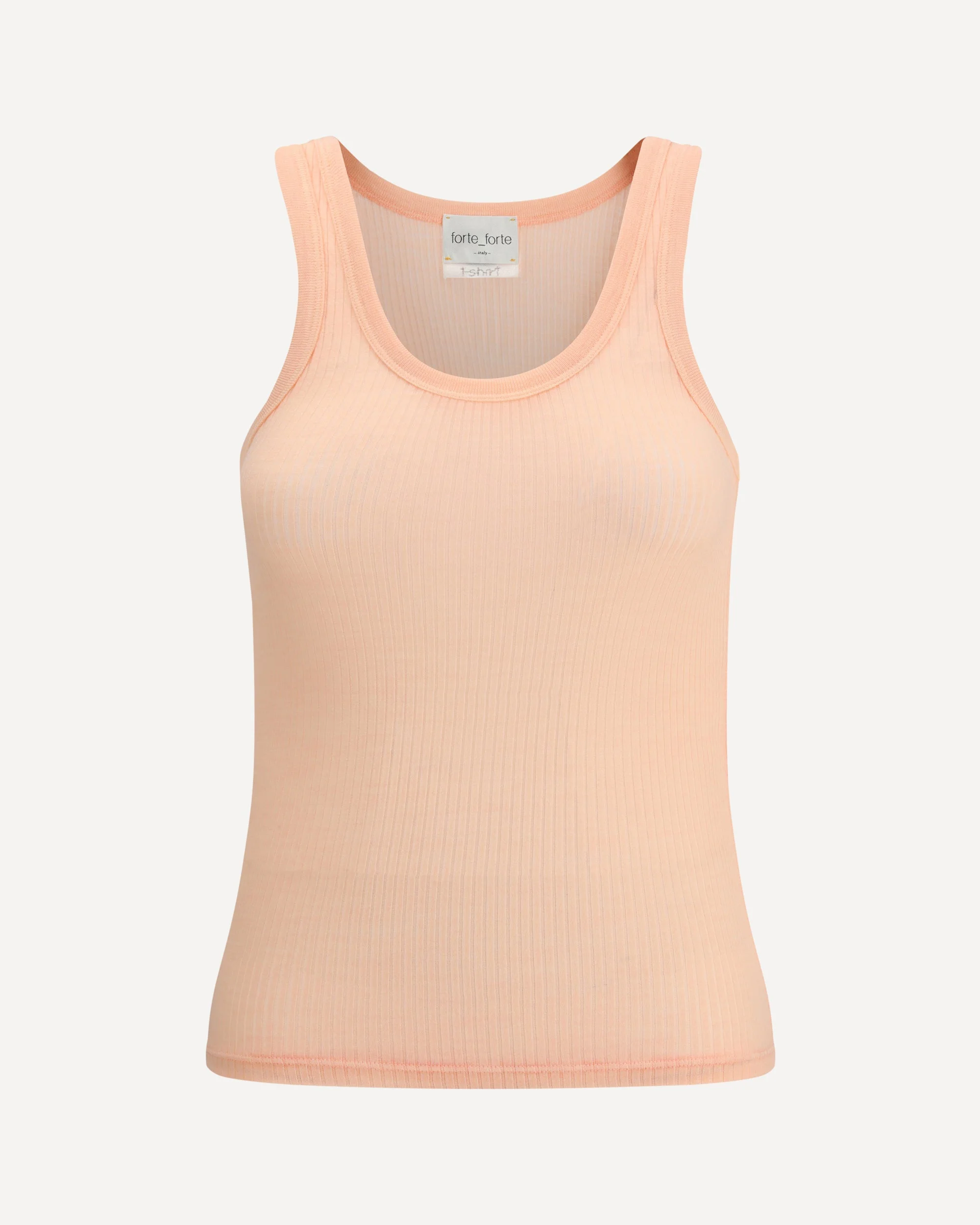 The halter-neck tank Top in wool jersey by forte_forte blends semi-active lines with delicate lingerie-inspired details in perfect harmony. The ribbed texture creates a sense of movement on the bodice, while the finely finished edges highlight the brand’s artisanal craftsmanship. An essential yet refined piece, ideal for looks that balance comfort and femininity. DETAILS - Sku: 14427MYTSHIRT_F48M2005 - Season: AW25 - Fit: Slim - Composition: GENERAL 80% Fleece Wool 20% Polyamide - MADE IN ITALY
