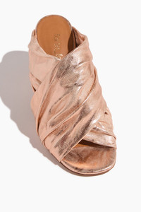 Heeled Laminated Leather Crossed Sandals in Cipria
