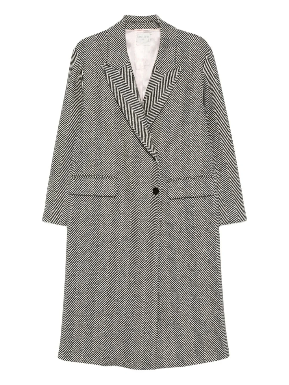 herringbone double-breasted coat Highlights - Black - Herringbone pattern - Double-breasted fastening - Peak lapels - Front flap pockets - Long sleeves Made in Italy Composition Outer: Virgin Wool 100% Lining: Viscose 100% SIZE & FIT Model measurements Height 5 ft 11 in(1.8 m) Bust/Chest 31.49 in(80 cm) Hips 36.61 in(93 cm) Waist 24.4 in(62 cm) Washing instructions Dry Clean Only