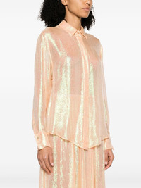 semi-sheer textured shirt Highlights - Blush beige - Silk blend/metallic threading - Semi-sheer construction - Iridescent effect - Spread collar - Concealed front button fastening - Shirt sleeves - Curved hem Made in Italy Composition Silk 66%, Metallic Fibre 34% Washing instructions Dry Clean Only