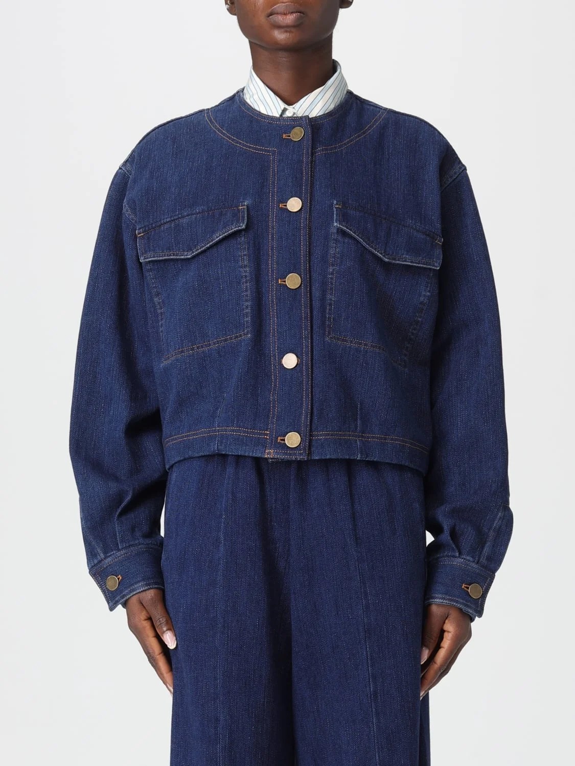 DESCRIPTION - Style: Urban-street - Neckline: Crewneck - Shoulders: Relaxed - Sleeves: Long - Cuffs: 1-button - Closure: With buttons - Pockets: Patch with flap - Length: Short jackets - Materials: Cotton denim - Pattern: Plain-colored DETAILS AND CARE Composition not available SIZE AND FIT Sizes not available Size and fit Regular fit Designer code: 14025MYSHIRT 4003 Giglio Code: H77549 Designer: Forte Forte Collection: Forte Forte Woman Category: Clothing Forte Forte