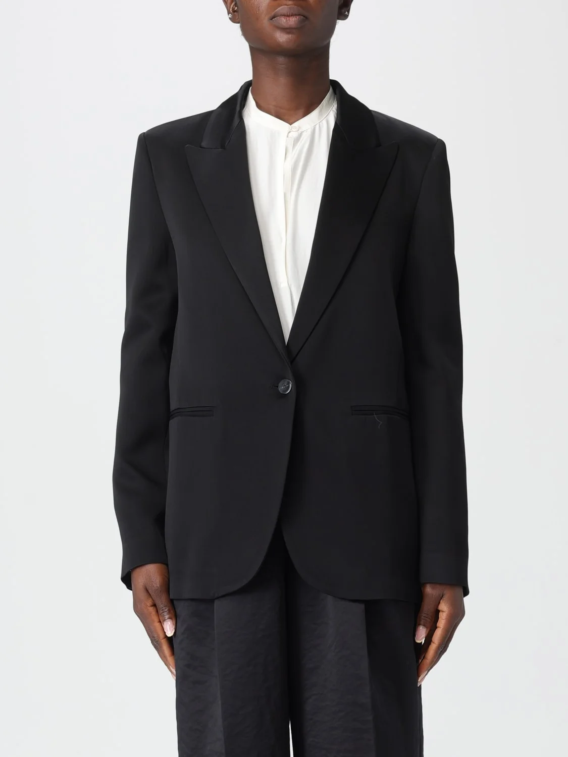 DESCRIPTION - Style: Elegant - Model: Single-breasted - Neck: Peak lapels - Neckline: V neckline - Shoulders: Regular - Sleeves: Long - Pockets: Slit pocket - Closure: 1-button - Length: Short jackets - Materials: Viscose - Pattern: Plain-colored DETAILS AND CARE Composition Synthetic->viscose26.0 % Synthetic->Acetate74 SIZE AND FIT Sizes not available Size and fit Regular fit Designer code: 14059BISMYJACKET 8007 Giglio Code: H77545 Designer: Forte Forte Collection: Forte Forte Woman Category: Clothing Forte Forte